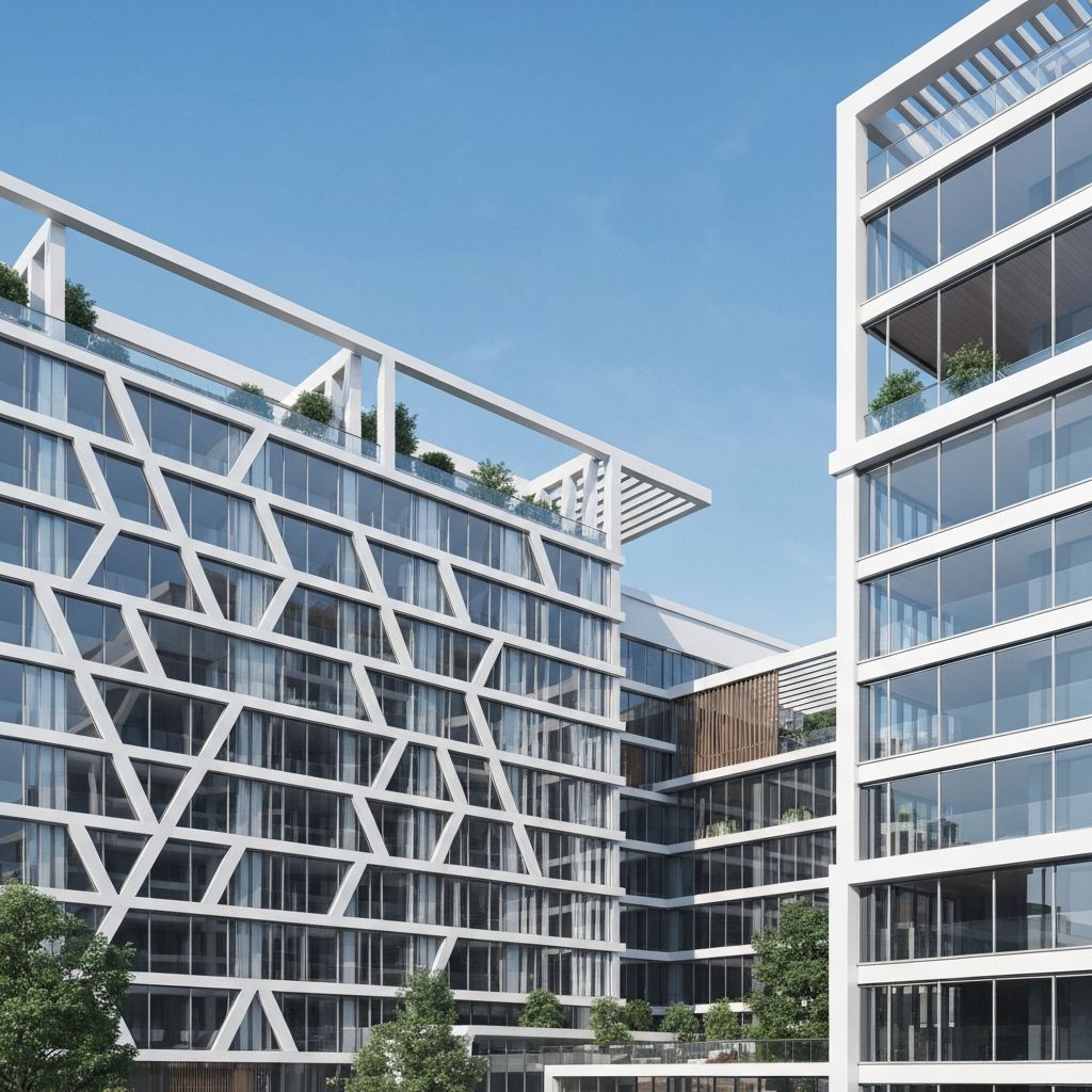 Modern multi-story apartment complexes with premium amenities and sustainable eco-friendly designs built for families.